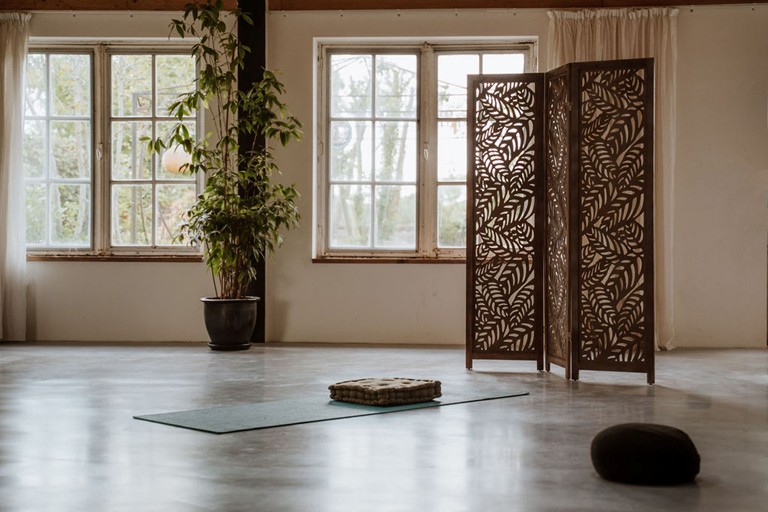 De authentieke boerderij, met veel lichtinval en vloerverwarming, dient als ceremonieruimte. De hele locatie ademt een speelse, vrije energie – helemaal in lijn met onze retraite en haar magische flow.